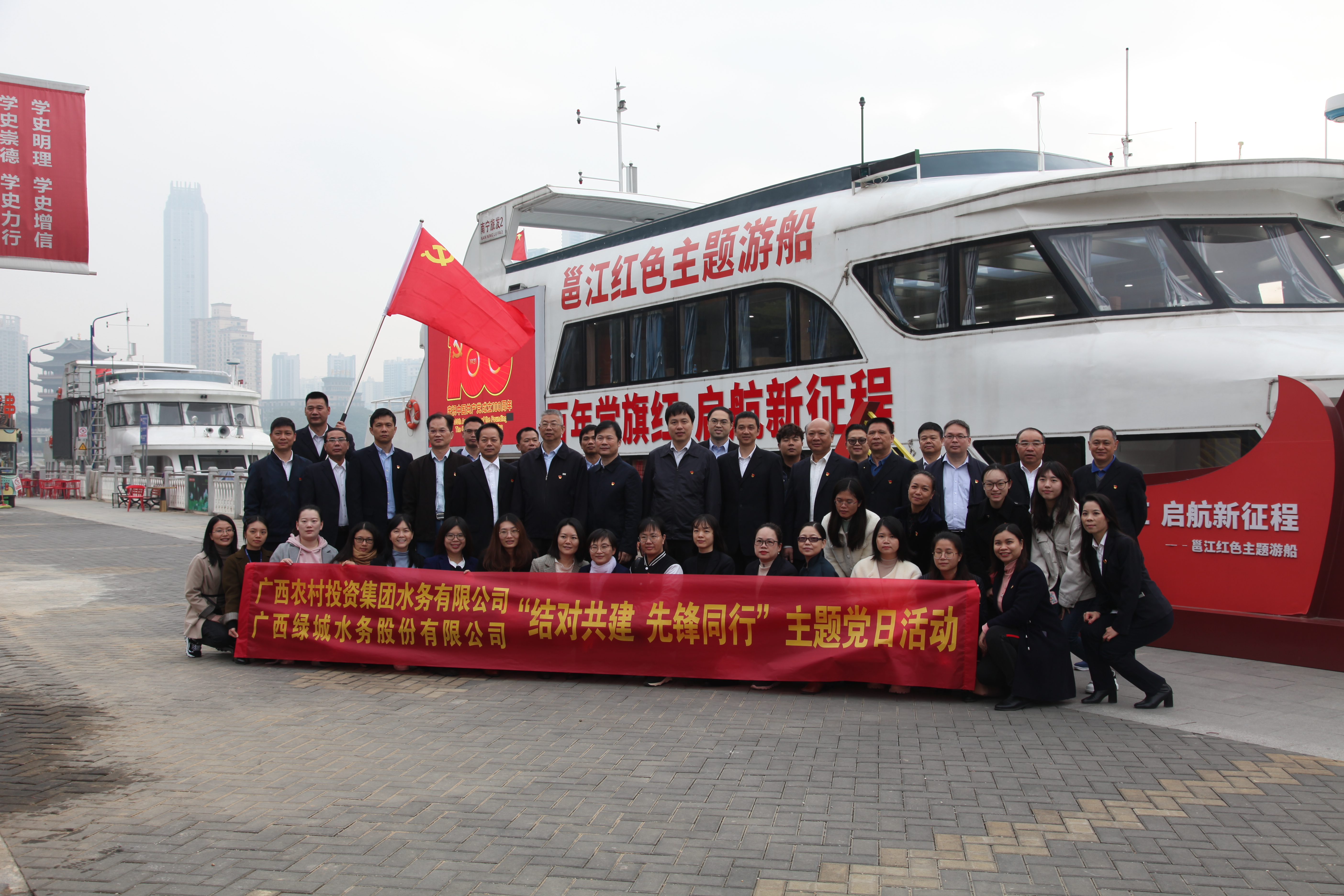 一百年前,中國共產(chǎn)黨在嘉興南湖的“紅船”上誕生。一百年后,為深入學(xué)習(xí)黨的百年奮斗歷程,開啟水務(wù)企業(yè)共建共謀、共治共享的新篇章,12月15日,廣西綠城水務(wù)股份有限公司第一黨支部和廣西農(nóng)村投資集團水務(wù)有限公司第一、第二黨支部以聯(lián)合共建的方式,在邕江紅色主題游船上開展“結(jié)對共建 先鋒同行”主題黨日活動。廣西農(nóng)投集團副總經(jīng)理陳遠(yuǎn)程、南寧建寧水務(wù)集團總會計師陳大任、農(nóng)投集團和農(nóng)投水務(wù)公司、農(nóng)投鄉(xiāng)村建設(shè)公司、綠城水務(wù)公司的領(lǐng)導(dǎo)班子成員也以普通黨員的身份參加了本次活動。