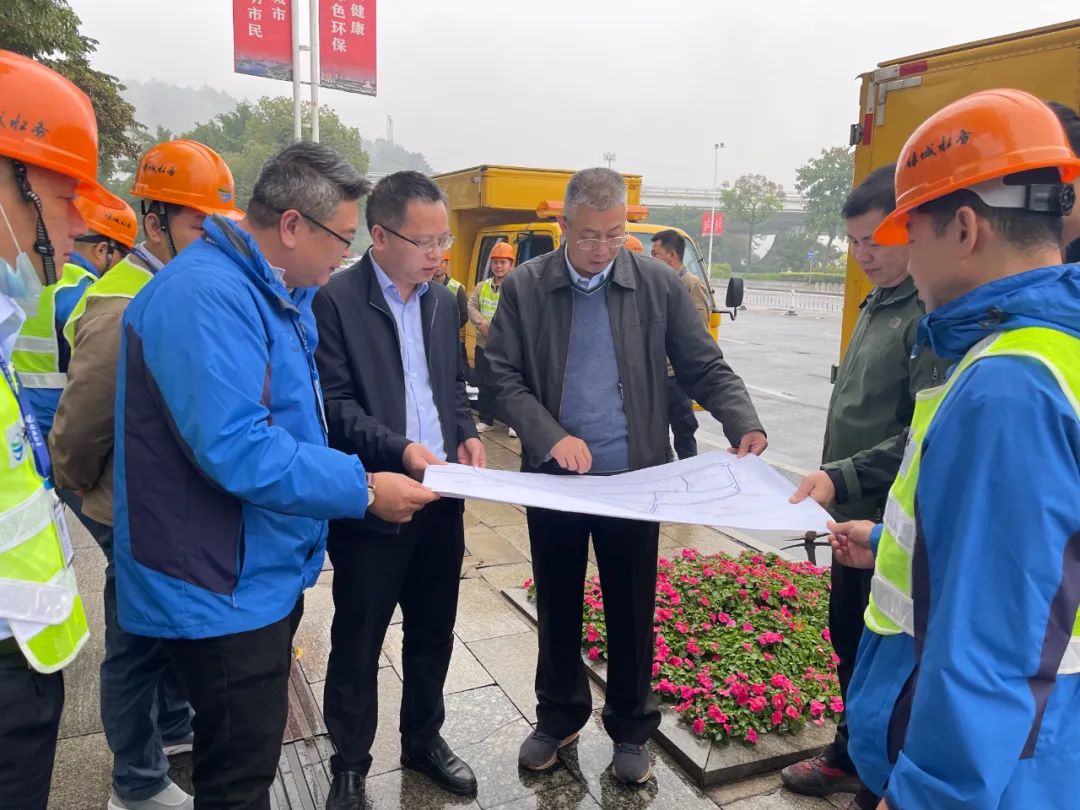徐斌元(右三)在供水保障工作一線指導工作。(蘇澤洋 攝)