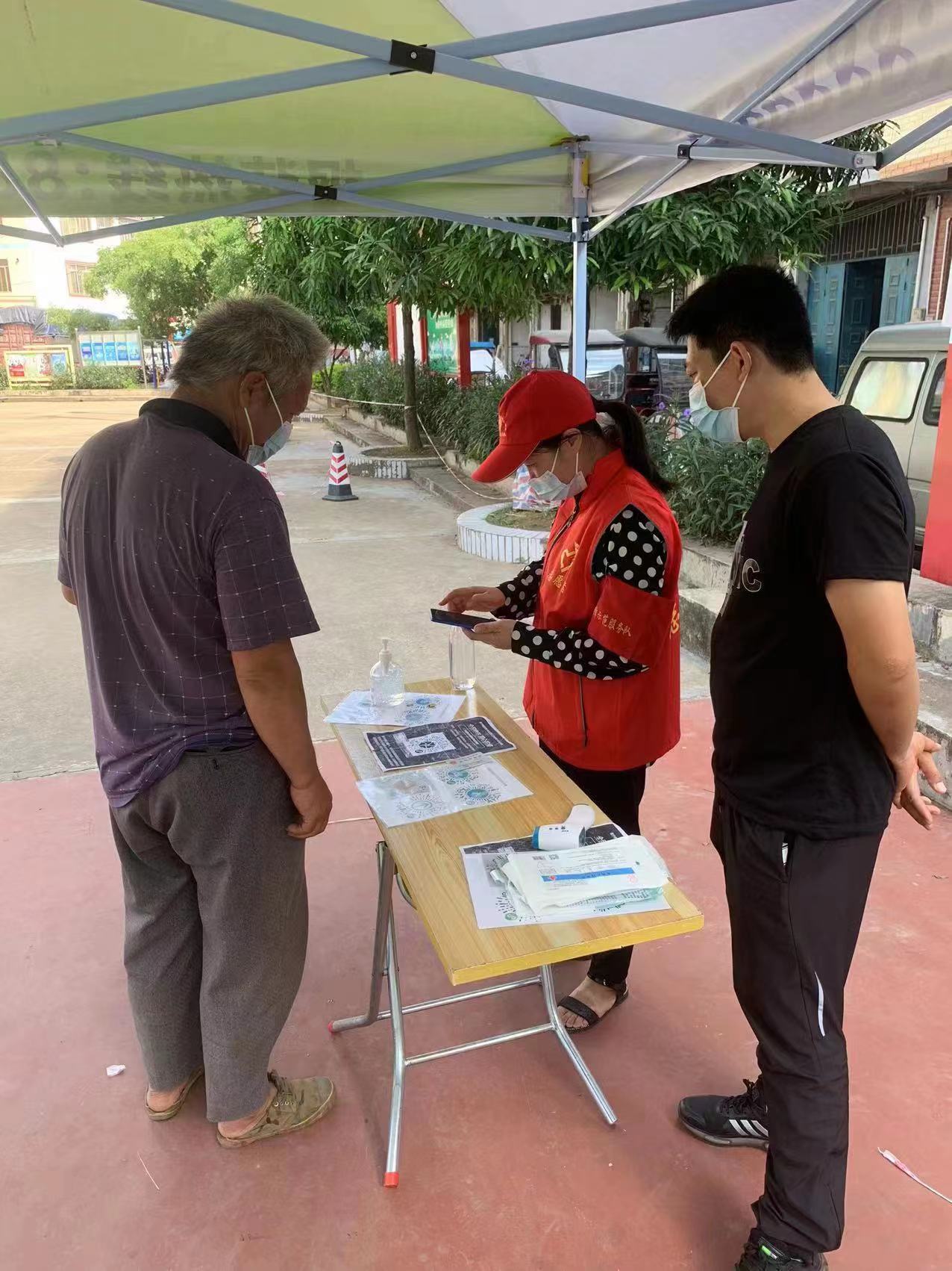 圖為機關第四黨支部黨員協助社區開展測溫工作