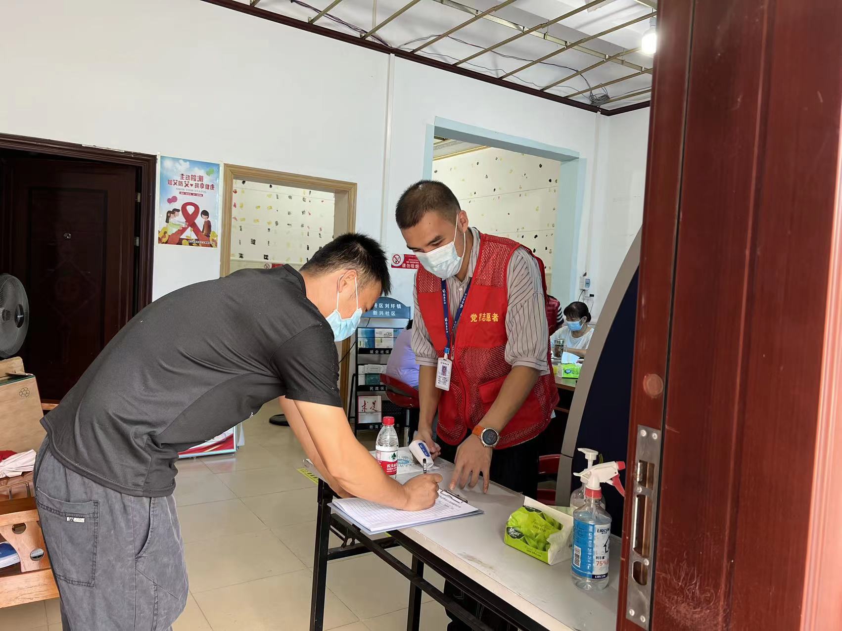 圖為機關第三黨支部黨員協助社區做好核酸檢測登記工作