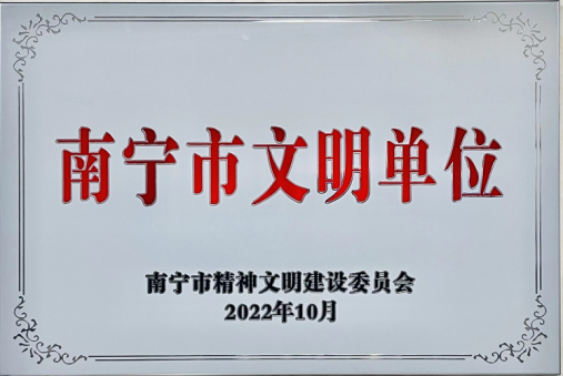 近日,南寧市精神文明建設委員會發布關于命名2022年第三十一批南寧市文明村鎮、文明單位的通報,廣西綠城水務股份有限公司喜獲“南寧市文明單位”榮譽稱號。