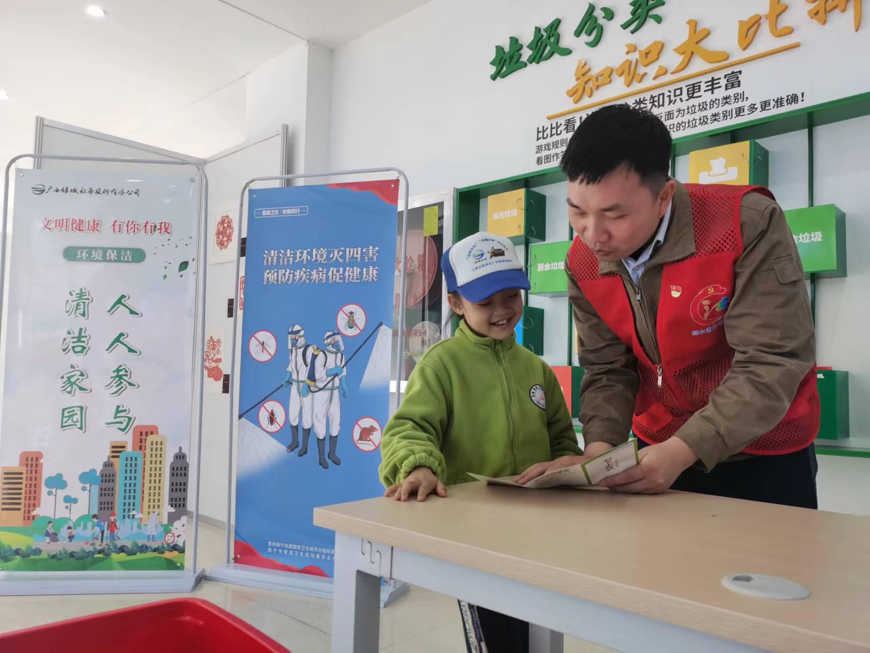講解員和小學(xué)生一起學(xué)習(xí)創(chuàng)衛(wèi)小知識(shí)