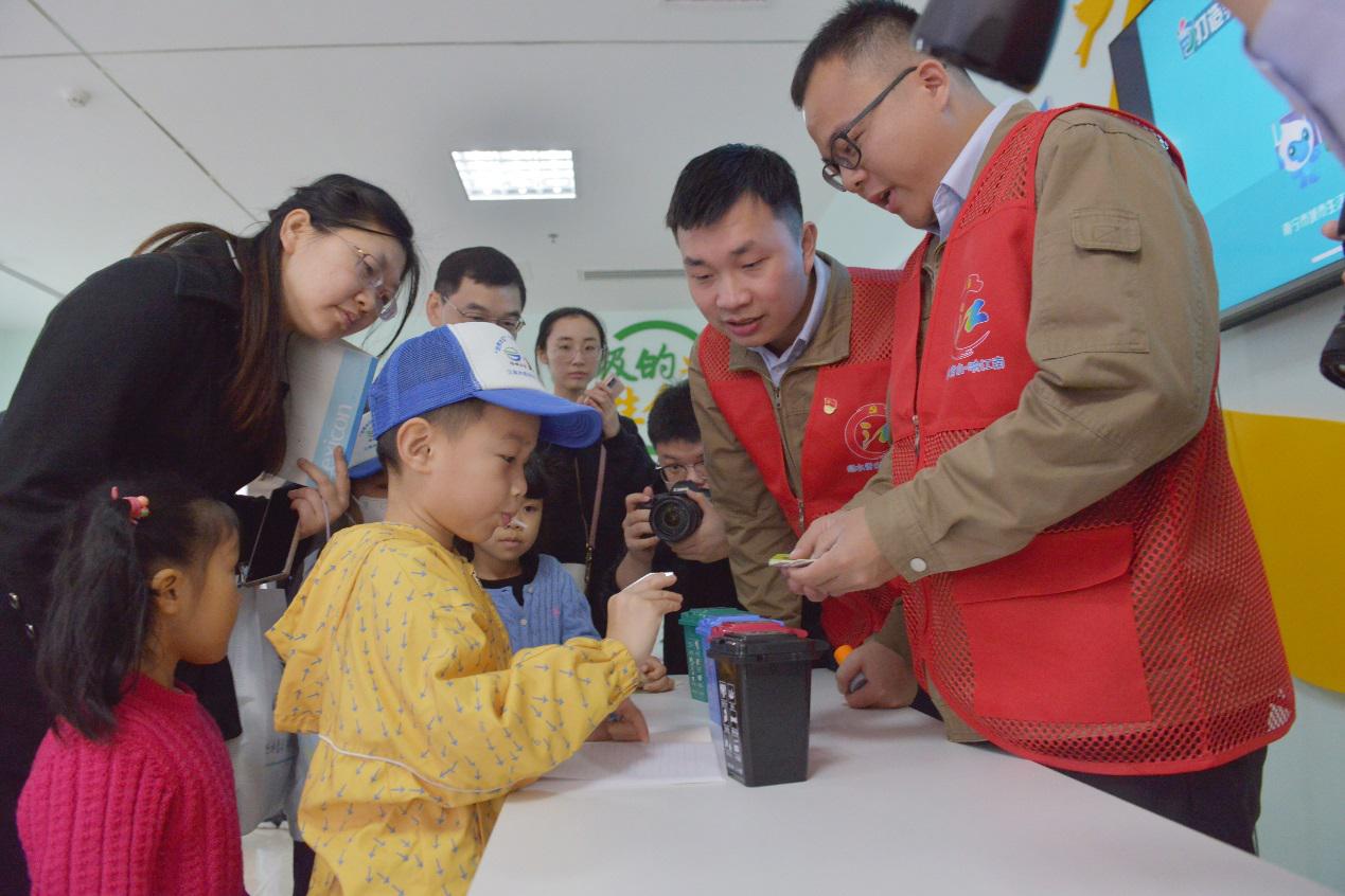 在水科普館,孩子們與講解員一起參與了水科學(xué)小實(shí)驗(yàn),通過(guò)親自動(dòng)手操作凈水科學(xué)實(shí)驗(yàn),更直觀地感受到“干凈水”的由來(lái)。在垃圾分類宣傳陣地,孩子們利用陣地中的道具開(kāi)展垃圾分類競(jìng)賽游戲,在歡聲笑語(yǔ)中加深了對(duì)垃圾分類的認(rèn)識(shí)。